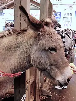 Rubens du Colombier, âne de provence, présenté attelé au salon international de l'agriculture 2013 à Paris. | |
