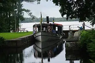 Le bateau à vapeur "Thor" dans l'écluse d'Åby.