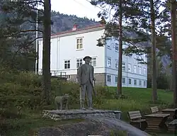 Le centre d'Åmli, à gauche la mairie, à droite l'ancienne gare. | |