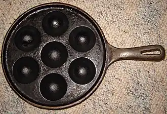 Les æbleskiver sont cuites sur le feu à l'aide d'une poêle spéciale munie de plusieurs renfoncements hémisphériques. La poêle existe en plusieurs versions pour le gaz ou les plaques électriques. Elles sont généralement en fonte, permettant une bonne retenue de la chaleur. Les modèles traditionnels en cuivre martelé existent mais sont principalement utilisés pour la décoration de nos jours.