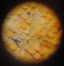 Les papillons disposent d'ailes membraneuses recouvertes d'écailles poudreuses. Ces écailles sont des soies aplaties. L'épaisseur des soies étant proche de la longueur d'onde de la lumière visible, les ailes de nombreuses espèces diurnes apparaissent irisées en raison du phénomène d'interférences lumineuses.