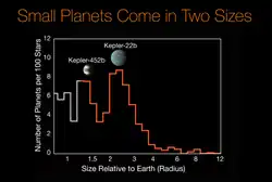 - ↑ « New exoplanet found very close to its star: Twice size of Earth, Wolf 503b orbits star every six days », sur ScienceDaily, (consulté le ) : « One recent discovery also shows that there are significantly fewer planets that are between 1.5 and 2 times the size of Earth than those either smaller or larger than that. This drop, called the Fulton gap, could be what distinguishes the two types of planets from each other, researchers say in their study of the discovery, published in 2017. »