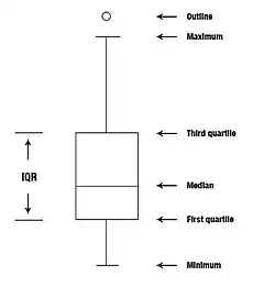 En statistiques, l’écart interquartile[1] (aussi appelé étendue interquartile[2] ou EI ; en anglais, interquartile range ou IQR) est une mesure de dispersion qui s'obtient en faisant la différence entre le troisième et le premier quartile :