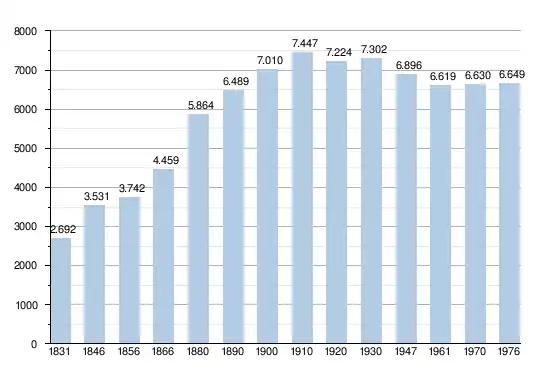 - Sources : INS, Rem. : 1831 jusqu'en 1970 = recensements, 1976 = nombre d'habitants au 31 décembre.