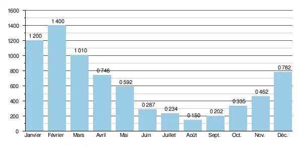 Le module de la rivière à Saint-Branchs est de 0,612 m3/s.