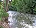 Eau en mouvement rapide avec des riffles et de petites vagues. Peu d'obstacles, tous évidents et facilement manqués avec peu d'entraînement. Le risque pour les nageurs est faible; l'« auto-sauvetage » est facile. | ![]() |