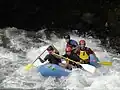 Rapides avec des vagues modérées et irrégulières qui peuvent être difficiles à éviter et qui peuvent submerger un canoë ouvert. Des manœuvres complexes en courant rapide et un bon contrôle du bateau dans les passages étroits ou autour des rebords sont souvent nécessaires; de grosses vagues ou des crépines peuvent être présentes mais sont facilement évitées. De forts tourbillons et de puissants effets de courant peuvent être présents, en particulier sur les rivières à fort débit. Le scoutisme est conseillé pour les groupes inexpérimentés. Les blessures en nageant sont rares; l'auto-sauvetage est généralement facile, mais une assistance de groupe peut être nécessaire pour éviter les longues nages. Les rapides qui se trouvent à l'extrémité inférieure ou supérieure de cette plage de difficulté sont respectivement désignés Classe III- ou Classe III +. | ![]() |