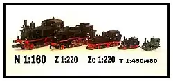 | Échelle TT ("TableTop") | 1:120 | TT TTm TTe TTi |