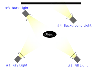 L'addition d'une quatrième source lumineuse, l' éclairage du fond, distingue l'éclairage à trois sources de celle à quatre.