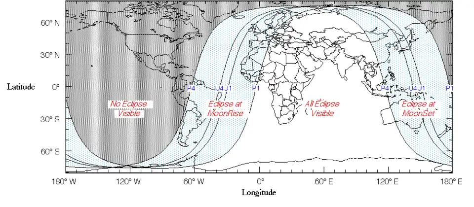 L'éclipse fut visible depuis l'Europe, l'Afrique, l'Asie et l'Australie.