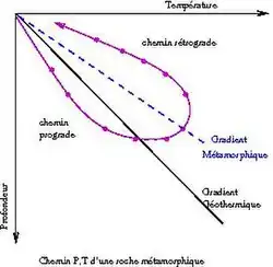 Une roche métamorphique passe en effet par différentes conditions P, T au cours de sa formation :