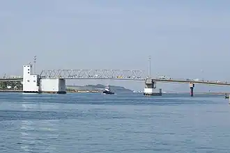 Au Golfe du Mexique, l’Intracoastal Waterway communique avec l’océan atlantique dont il suit les marées, plutôt faibles (± 0,5 m) alors que le Mississippi et quelques autres fleuves se trouvent soit au-dessus du zéro des cartes, soit connaissent des crues importantes et soudaines (près de 4 m de surcote lors de la grande crue de 1927). Aux abords de l’estuaire, les écluses d'Harvey[26], d’Algiers[27] et d’Empire[28] (rive droite) et, rive gauche, d'Inner Harbor[29] et d’Ostrica[30] permettent de racheter ces écarts avec le Mississippi. Contrairement aux écluses des affluents de la Seine du Rhin dont les buscs s’opposent vers l’amont, ici, les portes sont orientées contre le fleuve des Amériques. La plupart sont du type à secteur qui garantit une résistance supérieure aux pressions hydrauliques considérables en périodes de crue. L'élargissement problématique aux normes courantes (en) de l'écluse du canal Industrial Harbor, montre les problèmes que pose une écluse desservant plusieurs voies d'eau de gabarits différents. Surtout lorsque la plus maritime d'entre elles, le MRGO, l'un des bras autrefois naturel du fleuve[31], a été récemment condamné[32] dans le cadre des grands travaux consistant « non seulement à réparer l'actuel réseau des digues du delta, […] mais aussi à le consolider »[33] et à y ajouter un barrage anti-tempête.