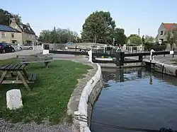 C'est à Bradford on Avon que la première pelletée de terre a été prélevée pour le percement du canal Kennet et Avon en 1794. Il y avait des quais en amont et en aval de l’écluse. L’écluse permet de franchir un dénivelé de 3,81 m (12 pi 6 po)[1].