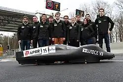 - Strasbourg Éco Team[23], qui regroupe depuis trois ans des élèves, enseignants et personnels de l'UFR de physique et ingénierie[24], composante de l'université de Strasbourg. Sa performance record a été réalisée en 2011 sur le circuit de Lausitz : 515 km/l. En 2012, l'équipe a réussi à enregistrer une performance de 204 km/l sur le nouveau circuit urbain de Rotterdam ;