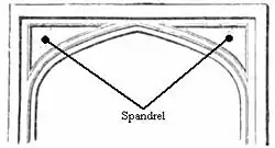 Dans le style gothique, on trouve cet élément aux angles des roses ou des rosaces formant des ouvertures de verrières décorées avec des écoinçons ajourés.