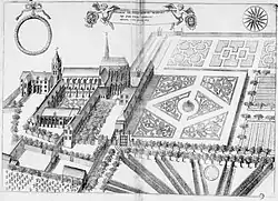 L’établissement d’un parc et d’un château le préoccupe jour et nuit. Il força ses religieux à lui céder l’abbatiale et presque tout l’enclos de leur monastère. Au centre, il fit construire un vaste château, bien loin d'imaginer que trois siècles plus tard, il abriterait des élèves !