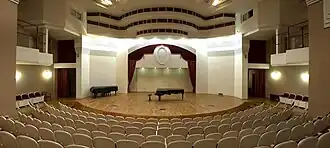 - une salle de musique de chambre (Камерный зал) (128 places, deux pianos de concert «Steinway» sur scène)