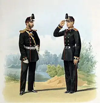 - ↑ (ru) Перемены в обмундировании, ill. Обер-офицер и юнкер Михайловского Артиллерийского училища 24 мая 1864 года в парадной форме.