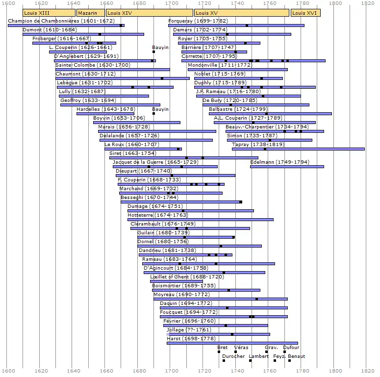 - Jacques Champion de Chambonnières, considéré comme le « père » de l'école française