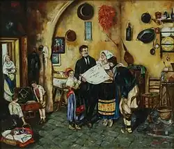 Bien que Sellitto ait été le premier caravagesque, Battistello Caracciolo est celui qui a été le plus influencé par le Caravage, probablement élève de Belisario Corenzio, un important peintre de fresques qui a réalisé de nombreuses œuvres dans diverses églises napolitaines. Caracciolo exprime pleinement la grande révolution caravagesque dans les tons de la lumière et l'utilisation de l'ombre, abandonnant cependant peu à peu le réalisme du maître et se rapprochant de modèles classicistes idéalisés, probablement à la suite de ses voyages à Rome et à Florence[24], dont ses fresques de la chartreuse Saint-Martin de Naples et de nombreuses peintures conservées dans les églises napolitaines et les musées nationaux, notamment celle présente au Pio Monte della Misericordia à Naples représentant la Libération de saint Pierre.