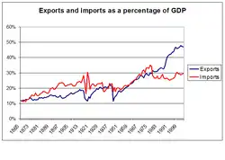 Les variations de la conjoncture du commerce international ne sont pas à négliger dans des systèmes largement ouverts, où les échanges extérieurs représentent 20 % du PNB en moyenne. C'est cette dépendance de l'étranger qui explique les tentatives d'organisation du marché nordique (projet de NORDEK en 1970), les partenariats européens (AELE, CEE) et les accords internationaux (GATT, OCDE).
