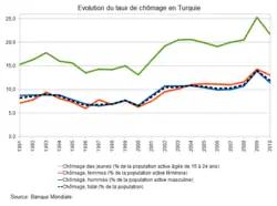 - ↑ « Turquie-Bond du chômage à 14,7%, au plus haut depuis 10 ans », sur Investir (consulté le ).
