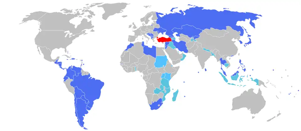 | Organisations internationales | G20, OCDE, OMC, EUCU, ECO, OCEMN, OTAN, OSCE |
