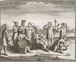 Les Amérindiens développèrent des relations de dépendance quand les articles européens remplacèrent les leurs. L'accroissement des prélèvements sur le gibier à fourrure entraîna sa raréfaction et exacerba les affrontements pour le contrôle des territoires de chasse. Durant la première moitié du XVIIe siècle, les guerres et les épidémies de maladies apportées par les Européens entraînèrent une forte diminution des populations indiennes, accentuant encore le bouleversement de leur mode de vie[54]. Tirant parti de la culture du don/contre-don, les Néerlandais puis les Britanniques, établis près de l'embouchure de l'Hudson, utilisèrent largement les cadeaux pour obtenir contre les Français le soutien des Iroquois, les inondant de produits tels que haches de fer et mousquets. Une fois leurs armes traditionnelles abandonnées, ceux-ci n'eurent guère d'autre choix que de poursuivre les échanges afin de se procurer poudre et munitions[56].