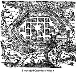 - ↑ Les Iroquois partageaient avec les Hurons cette forme d'habitation (longhouse en anglais) qu'évoque le nom qu'ils se donnent dans leur propre langue : Hodénosauni, le peuple de la longue maison.
