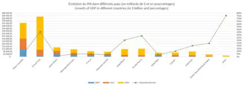 | PIB (courant)[6] : | 36 300 milliards de dollars US | 43 070 milliards de dollars US |