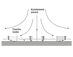 La vitesse relative parallèle à la paroi (dans la « couche limite ») est indépendante de x :