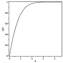Si l'on prend pour définition de l'épaisseur de couche limite , l'épaisseur de celle-ci (voir courbe) est donnée par .