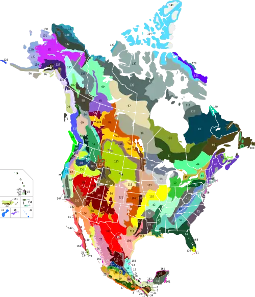 L'écozone néarctique est divisée en 119 écorégions terrestres appartenant à 11 des 14 biomes terrestres.