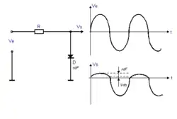L'écrêtage consiste à supprimer une partie de l'amplitude d'un signal[1]. Le redressement supprimant les alternances négatives peut être considéré comme un cas particulier de l'écrêtage.