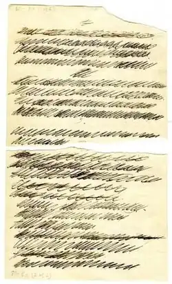 - Roland Barthes s’est également impliqué dans l’écriture asémique ; il a intitulé ses œuvres asémiques Contre-écritures[30],[31]. Irma Blank était une autre contributrice importante à l’écriture asémique[32].