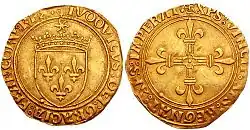 L'écu à la couronne, ainsi qu'un demi-écu à la couronne du même type fut également fabriqué sous le roi Charles VII le Victorieux. Cette monnaie d'or pesait 3,47 grammes.