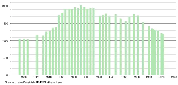 - ↑ Fiches Insee - Populations de référence de la commune pour les années 2006, 2007, 2008, 2009, 2010, 2011, 2012, 2013, 2014, 2015, 2016, 2017, 2018, 2019, 2020, 2021 et 2022.