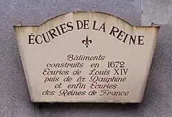- ↑ « Ecuries du Roi, puis de la Reine (anciennes) - fiche PA00087686 », sur www.pop.culture.gouv.fr (consulté le ).