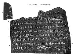 Fragment de l'édit du schisme, sur le pilier d'Ashoka de Sanchi, en 1913, plus de 2000 ans après son inscription. | |