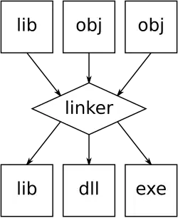 L’édition des liens est aussi capable de créer les références appropriées vers les fonctions contenues dans les « bibliothèques dynamiques partagées », dont le chargement (assuré par le système d'exploitation) est retardé jusqu’au moment de l’exécution du code objet. De telles bibliothèques partagées permettent de réduire la taille des fichiers exécutables produits par la compilation et l’édition de liens (lorsque le code de la bibliothèque est commun à plusieurs programmes). Elles sont populaires sous le nom de dynamically linked library (DLL, sous Windows) ou shared object (SO) ou dynamic library (DYLIB, sous Mac).