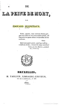 Peu de temps après, il a écrit De la peine de mort (1827) où il cherche à montrer la barbarie et l'inefficacité de la peine capitale. Il fit paraître ensuite deux brochures (De la justice de prévoyance, et particulièrement de l'influence de la misère et de l'aisance, de l'ignorance et de l'instruction sur le nombre des crimes et De la justice de répression et particulièrement de l'inutilité et des effets pernicieux de la peine de mort) commentant Du système pénal et répressif en général et de la peine de mort en particulier (1827) de Charles Lucas.