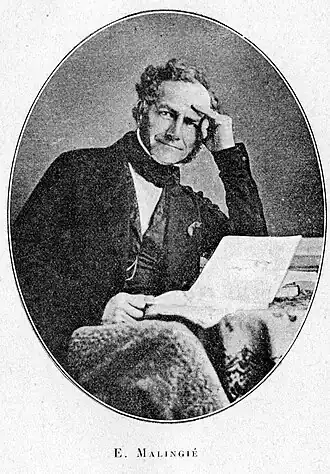 - ↑ Considérations sur les bêtes à laine au xixe siècle, et Notice sur la race de la Charmoise, qui a remporté pendant ces dernières années les premiers prix, aux concours de Poissy et de Versailles; par M. Malingié-Nouel, propriétaire-directeur de la ferme-école de la Charmoise. Paris, 1851. 1 vol. in-8°, avec pi