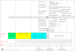 Globalement, son système éducatif est basé sur le système éducatif britannique[18], mais a subi de nombreuses modifications depuis deux cents ans.
