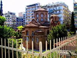 À l'extérieur du Mont Athos, un important exemple de cette variante architecturale nous est fourni par une église du XIVe siècle de Thessalonique connue sous le nom de Profitis Elias.