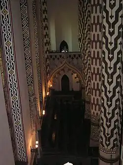 Les murs de l’intérieur de l’église sont recouverts d’enduit et peints en couleur claire et les colonnes sont couvertes des motifs géométriques mauresques.