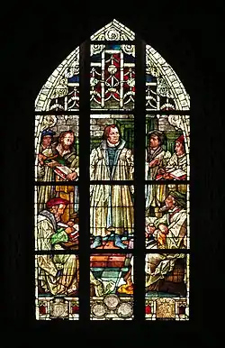 Le vitrail de l’autel : La découverte du corps d’Henri II le Pieux - Les Apôtres Pierre et Paul