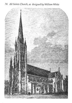 All Saints fut finalement achevé en 1861 pour un coût de 25 000 £, sans sa flèche[4] pour le mandat du révérend John Light du Trinity College de Dublin[6].