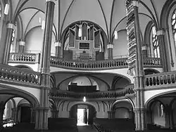 Si la structure du bâtiment est sortie indemne de la Seconde Guerre mondiale, beaucoup de dommages à la toiture et à la maçonnerie durent être réparés. La médiocrité des matériaux utilisés à l'époque occasionna la nécessité de nouvelles réparations au début du XXIe siècle[16]. En 1961, l'intérieur de l'église a été rénové. À cette occasion, l'autel a été déplacé de l'abside au centre de la salle de prière octogonale.