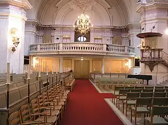L'orgue de l'église a été construit selon les souhaits du compositeur Otto Olsson, qui fut également organiste de l'église de 1907 à 1956. Il possède 76 jeux répartis sur trois claviers et pédalier. La crypte sous l'église servait à l'origine de chapelle funéraire et fut agrandie en 1924 pour accueillir ce qui est probablement le premier columbarium de Suède[1],[2].