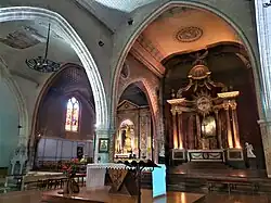 L'intérieur conserve des fresques du XIXe siècle, réalisées par le peintre Mongis, ainsi que deux tableaux datant de la même époque : une « Descente de croix » et une « Adoration des mages »[8].